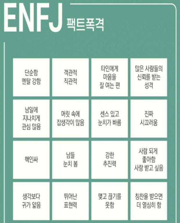 이거는 혹시 주위에 ENFJ남자 있으면 한번 살펴보세요